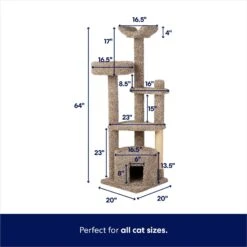 Frisco 64-in Cat Tree With Hammock, Condo, 2 Top Perches With Bed